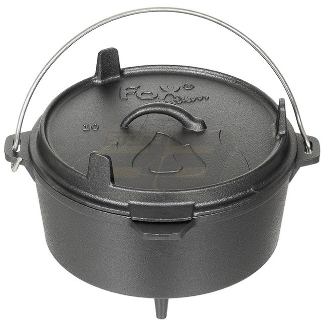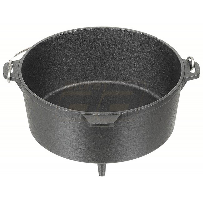 cocotte et couvercle avec 3 pieds anse pliable couvercle avec poignée, utilisable comme poêle petite encoche laterale pour thermomètre Capacité: ca. 3,8 l (4 Qt) Dimensions: ca. 30 x 13,5 cm (D x H) Hauteur avec couvercle: ca. 18,5 cm Poids avec couvercle: ca. 5,6 kg