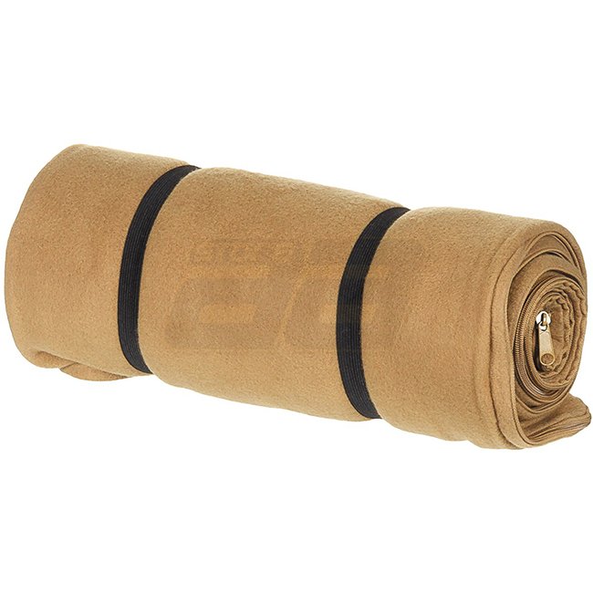Sac de couchage en polaire FoxOutdoor - Coyote : Sac de couchage en polaire confortable avec fermeture éclair à double sens sur toute la longueur, polyvalent en tant que couverture. Comprend 2 sangles élastiques pour un rangement facile. Léger à 800g avec