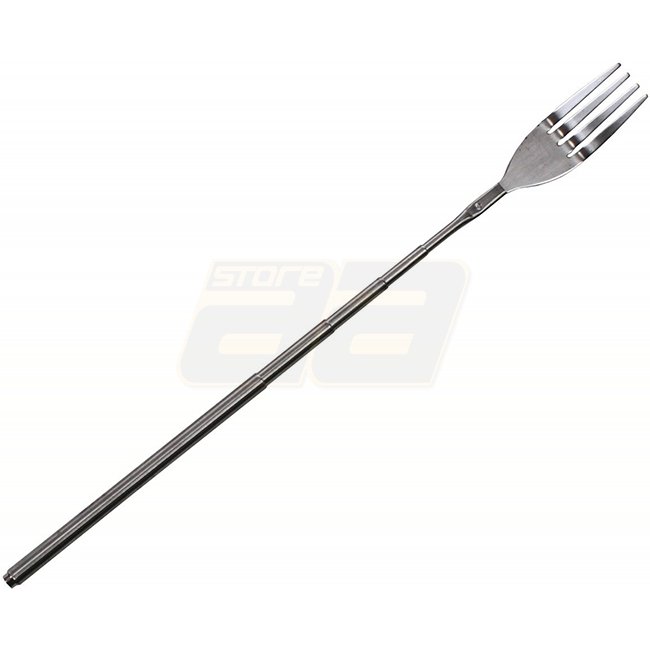 Fourche Télescopique FoxOutdoor en Acier Inoxydable - Extensible jusqu'à environ 65 cm, rétractable jusqu'à environ 23 cm. Légère à environ 30 g. Fabriquée en acier inoxydable à 100 %.