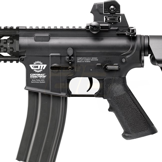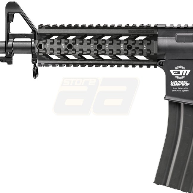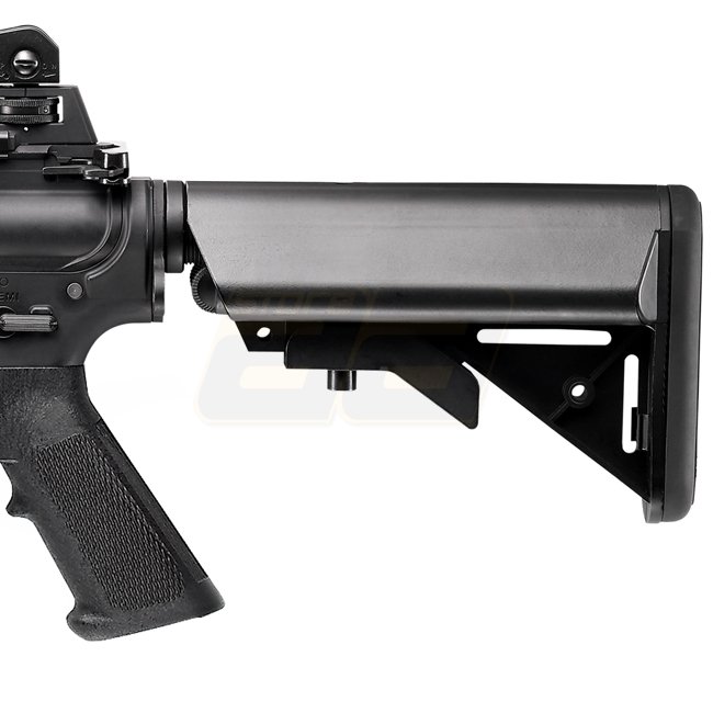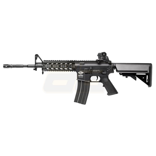 G&G CM16 Raider-L AEG - Noir, Gearbox version 2, moteur de type long, corps en polymère avec accessoires en métal, capacité du chargeur de 450 coups, longueur de 780-875 mm, poids de 2065 g, longueur du canon interne de 363 mm, filetage de bouche de 14 mm