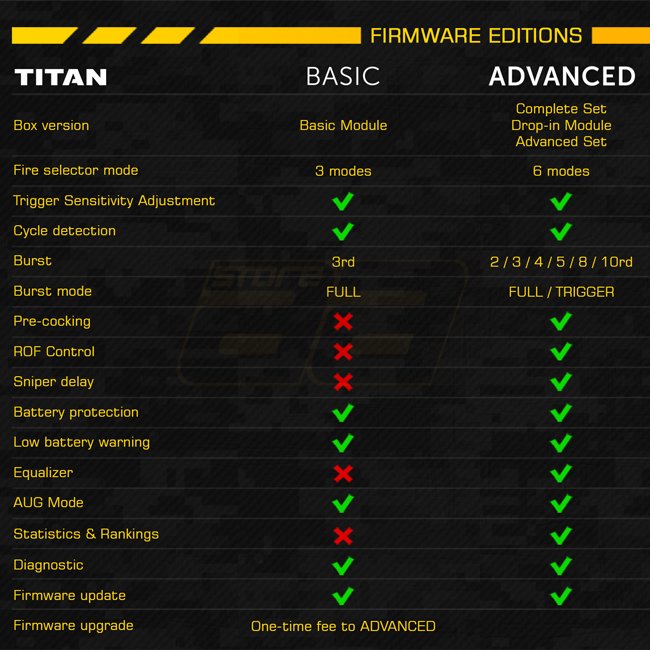 Améliorez votre réplique d'airsoft avec le Module de Base Gate TITAN V3. Comprend le firmware BASIC, le câblage universel, le kit d'installation et les guides de démarrage rapide. Améliorez votre expérience de jeu dès maintenant !