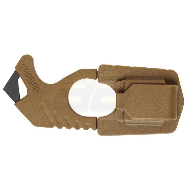 Gerber Strap Cutter - Coyote - Outil essentiel pour les situations d'urgence. Coupez rapidement et sans effort des sangles et des ceintures de sécurité. Construction durable en acier inoxydable avec un revêtement en oxyde noir. Présente un tranchant de co