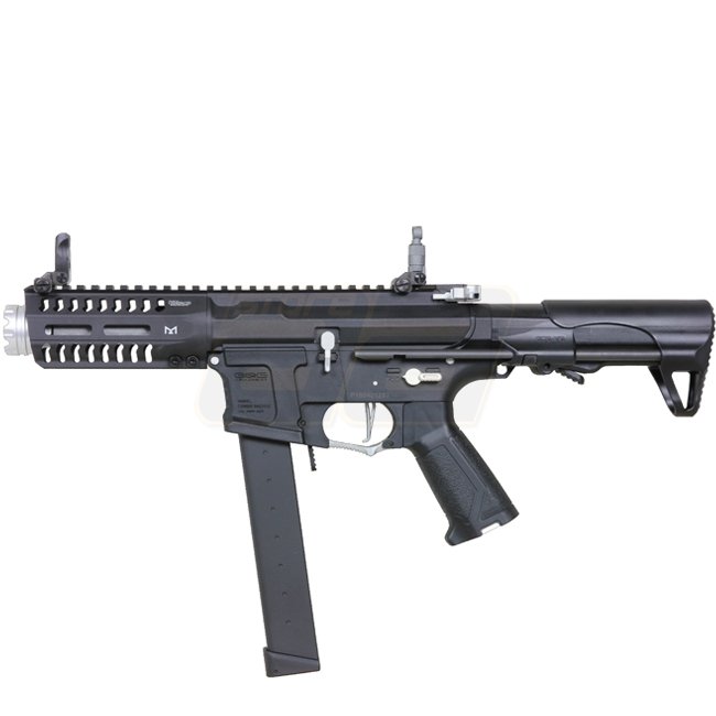 G&G ARP 9 0.5J AEG - Ice est une réplique d'airsoft compacte et puissante avec une capacité de chargeur de 300 billes. Elle dispose d'un gearbox Version 2, d'un MOSFET pour de meilleures performances, et d'un moteur de type long. Le receiver, la crosse et