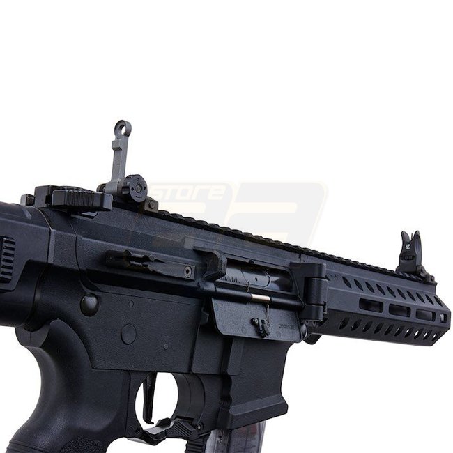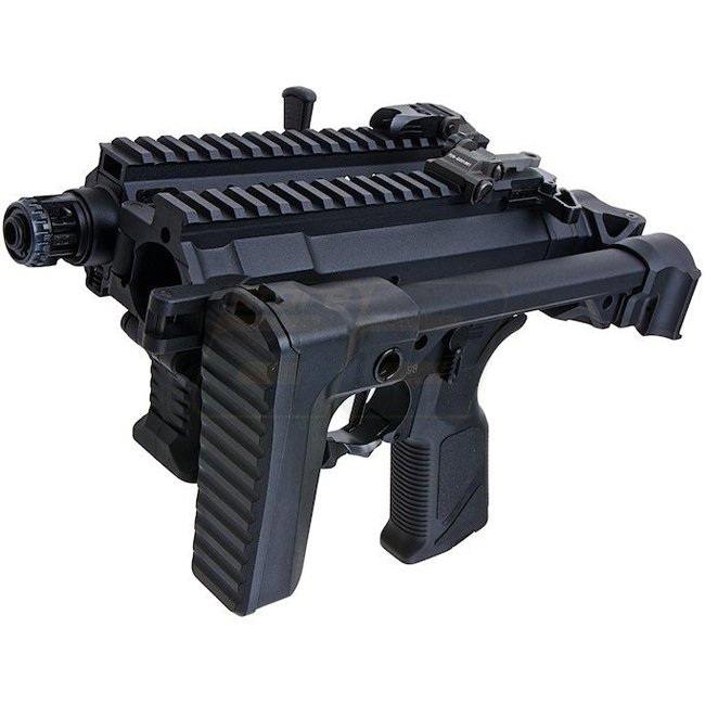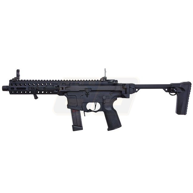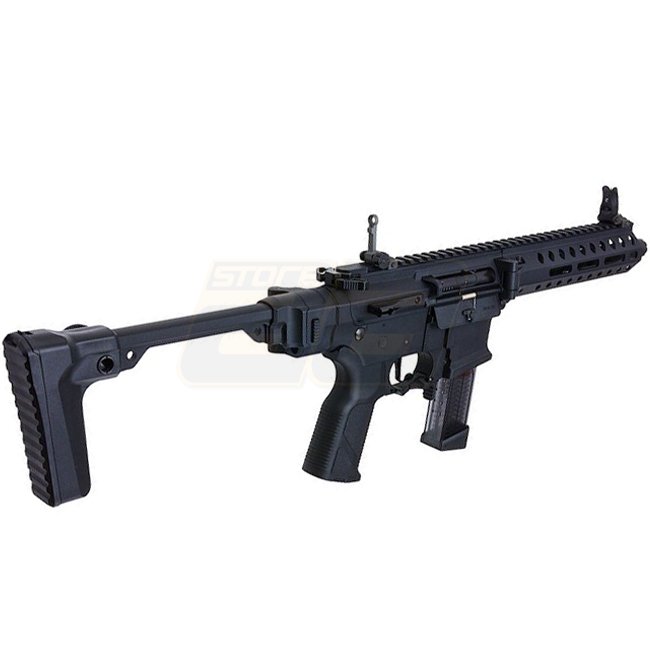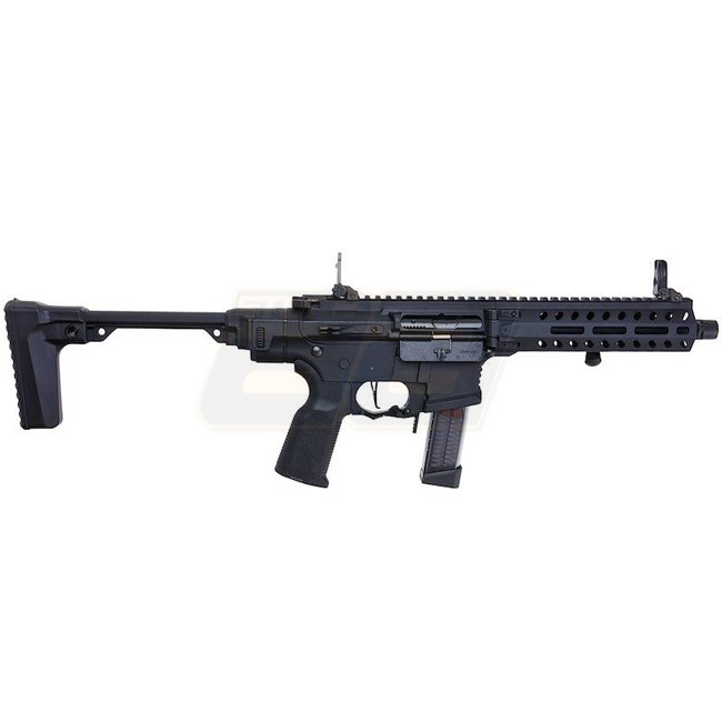 G&G FAR 9 Carabine PCC AEG Pliant Rapide - Noir : Boîte de vitesses personnalisée, MOSFET, construction en métal, capacité du chargeur de 68 billes, longueur de 253/675 mm, poids de 2100 g, canon interne de 206 mm, mode de tir Semi & Full Auto, hop-up rég