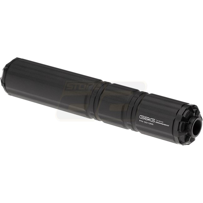 G&G GOMS Mk3 Silencieux CCW en noir, mesure 37 mm de diamètre et 210 mm de long. Présente un filetage de 14 mm / CCW. Fabriqué en métal durable.