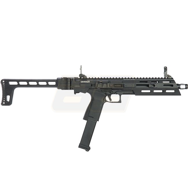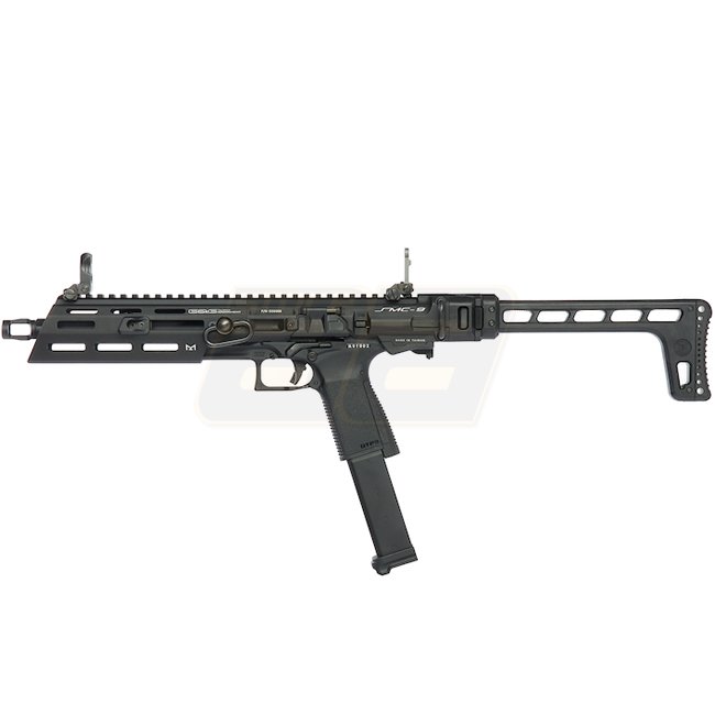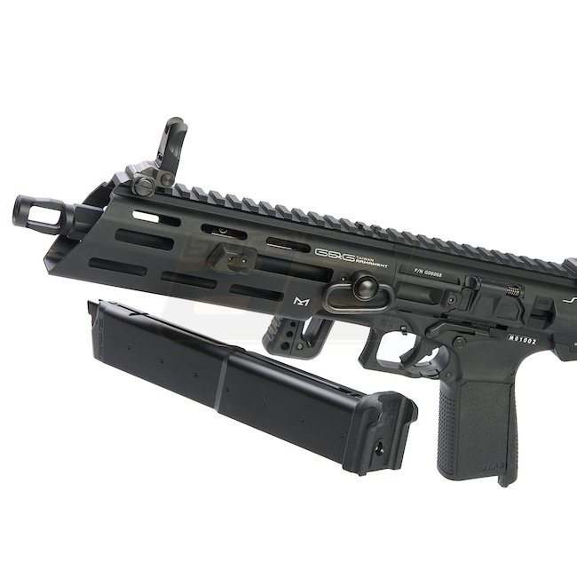 G&G SMC-9 Gaz Blow Back SMG : Construction en métal/polymer, chargeur de 50 billes, longueur de 620 mm, poids de 2150 g, canon interne de 220 mm, filetage de bouche de 14 mm- / CCW, 320-340 FPS, semi/auto complet, portée de 43.90-46.65 m, hop up ajustable