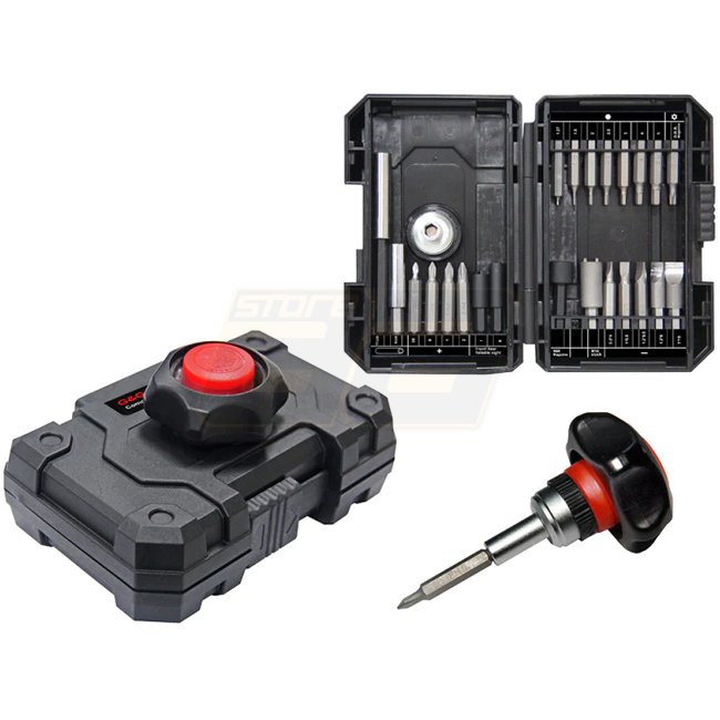 Comprend 24 pièces: Philips, tête plate, tête hexagonale, rallonges, mire avant/arrière, crosse M14, chargeur G980 et chargeur GBB
