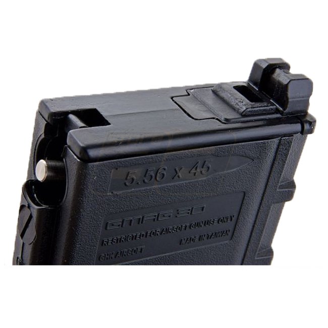 Convient aux fusils airsoft à gaz GHK G5 Series, chargeur Co2 de 30 coups en couleur noire élégante.