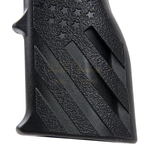G&P M4 AEG Grip Drapeau US CNC est une réplique d'airsoft de haute qualité avec une finition noire élégante et un design unique du drapeau américain sur la poignée. Parfait pour les missions tactiques et pour ajouter une touche patriotique à votre jeu.