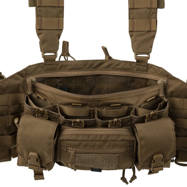 Le Helikon-Tex Guardian Recce Chest Rig est un gilet thoracique léger et polyvalent conçu pour les opérations tactiques et les activités de plein air. Il comprend quatre poches principales pour chargeurs compatibles avec les chargeurs AR/AK, ainsi qu'un espace de rangement supplémentaire pour le petit matériel comme les outils, les cartes, les radios et autres équipements. La sangle compatible MOLLE des deux côtés permet une personnalisation supplémentaire. Les bretelles et les sangles réglables à la taille offrent un ajustement confortable et vous permettent de porter le gilet thoracique seul ou par-dessus un gilet pare-balles. Il est idéal pour les chargements de reconnaissance, permettant un accès facile à l'équipement essentiel dans les situations dynamiques.