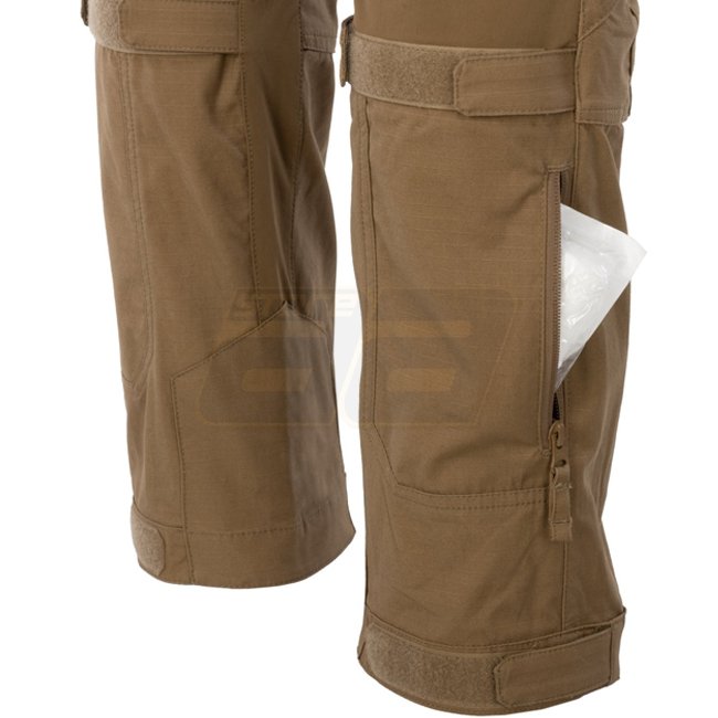 Des inserts en matériau Versastrech ont été utilisés dans les zones clés (taille, entrejambe et arrière des genoux). Il sèche rapidement et est hautement respirant. La zone des genoux est renforcée avec du tissu Cordura 500D avec des fentes pour inserts de protection. Grâce à des cordons supplémentaires situés sous le genou et en bas de jambe, le pantalon peut être facilement ajusté à la jambe.