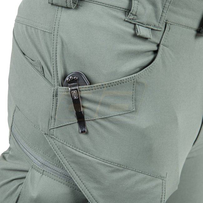 "Pantalons tactiques extérieurs Helikon-Tex OTP" conçus pour les activités en plein air. Conserve un look civil avec une disposition fonctionnelle des poches. Taille élastique pour l'ajustabilité de la taille. Comprend des poches renforcées pour clips de