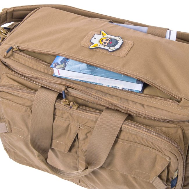 • Poches: Trois poches zippées dans le couvercle, deux poches latérales (dont une désignée Med‑Kit), une poche extérieure rabattable et des poches plates pour cibles ou matériel sale