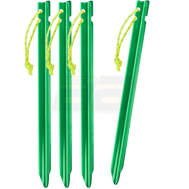 Les piquets de bâche sont un ensemble de quatre piquets de bâche en aluminium légers. En raison de leur matériau, ils sont 100% résistants à la rouille. Un profil spécial augmente leur durabilité et améliore la stabilité lorsqu'ils sont enfoncés dans le sol. Chaque piquet ne pèse que 12 grammes et possède une ficelle brillante pour un tirage facile du sol. Les chaînes vous permettent également de relier les enjeux les uns aux autres, vous éviterez ainsi de les perdre pendant le voyage.