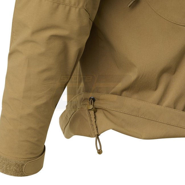 La coupe plus ample fait du Trooper Mk2 un excellent choix comme veste extérieure softshell, et les jours plus froids, vous pouvez superposer quelque chose de plus chaud en dessous, par exemple un sweat à capuche. Le matériau principal utilisé est le StormStretch®, un nylon léger avec une touche d'élasthanne, qui rend la veste confortable et non contraignante. Il sert de couche légère qui protège du froid et de l'humidité, aidée par la conception bien pensée de la capuche escamotable avec une visière profilée. La coupe allongée protège vos reins du vent.