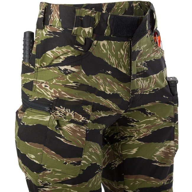 Pantalons tactiques urbains Helikon-Tex - Ripstop en polycoton extensible - Rayures tigre - S - Long. Taille élastique avec fermeture velcro, passants de ceinture de 50 mm de large, poches avant renforcées, poches cargo, poches pour smartphone/revue AR, c