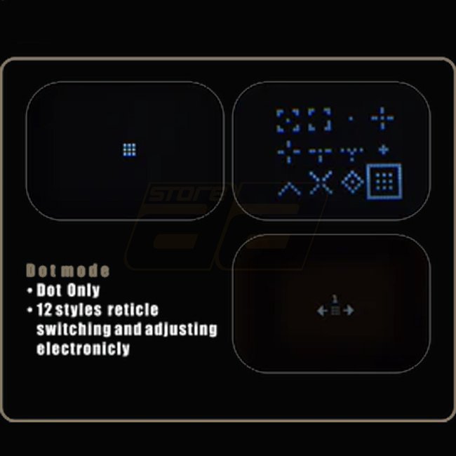 • Réticule: Point de 3 MOA avec 12 motifs de réticule sélectionnables