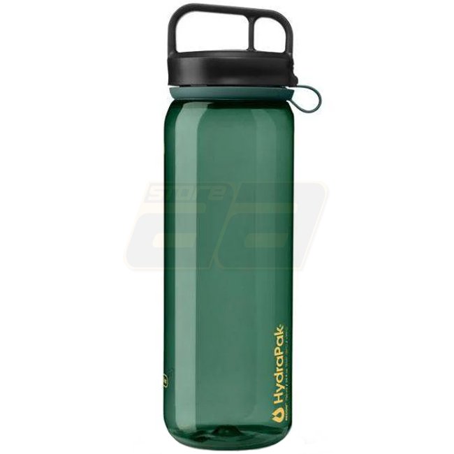 Une bouteille verte HydraPak RECON™ Clip & Carry de 750 ml, durable et légère, fabriquée à partir de 50 % de contenu recyclé. Parfaite pour les aventures en plein air avec un capuchon attaché, une poignée inclinée et un profil élancé.