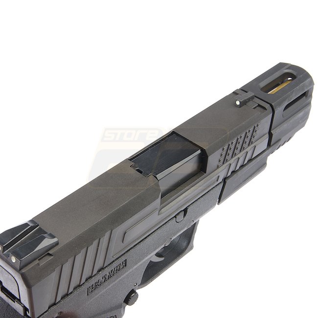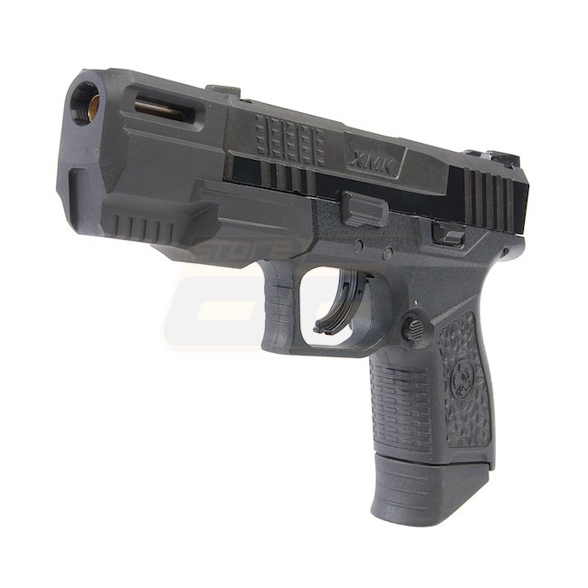 Pistolet à gaz à blowback ICS XMK Compact de haute qualité en noir élégant. Glissière en métal, poignée et cadre en plastique pour la durabilité. Comprend un chargeur de 17 coups et un hop-up réglable. Parfait pour le tir semi-auto à une portée de 34,30-3