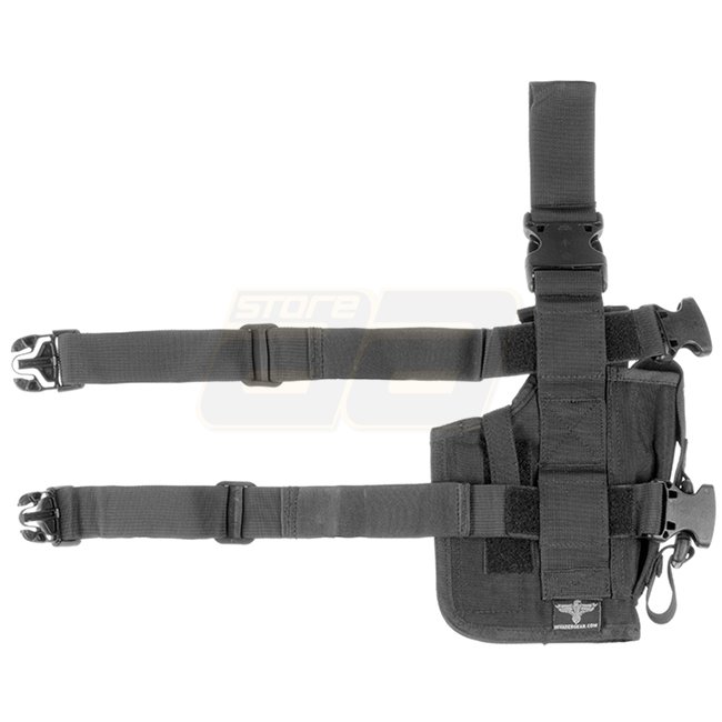 Étui universel pour les forces spéciales conçu pour s'adapter à une large gamme de pistolets de taille moyenne et grande comme par exemple le Glock 17, le Beretta 92 ou le SOCOM MK23 - il peut également être configuré pour s'adapter aux pistolets avec lampe de poche ou visée laser.