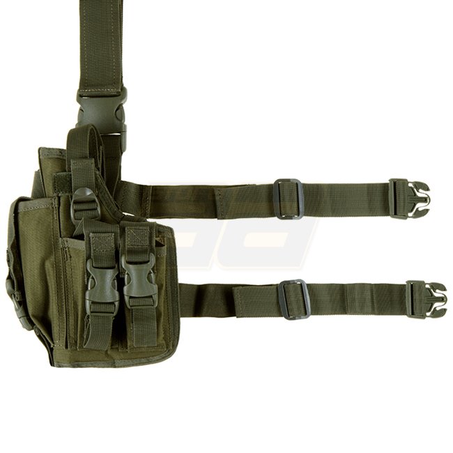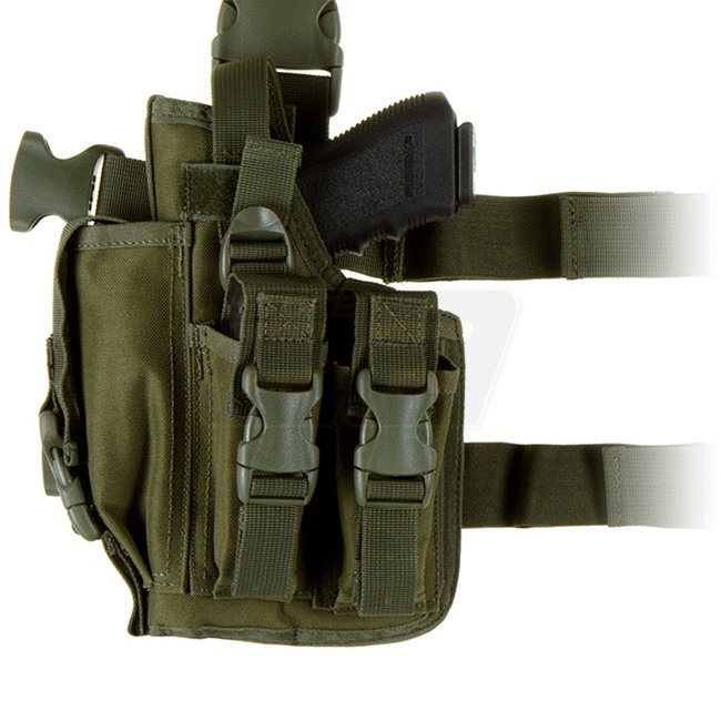 L'étui des SOF est équipé de trois poches de chargeur intégrées (l'une est surdimensionnée et peut également accueillir un silencieux) et d'un panneau de jambe intégré - fixé à la cuisse par un clip de ceinture et des sangles élastiques.
