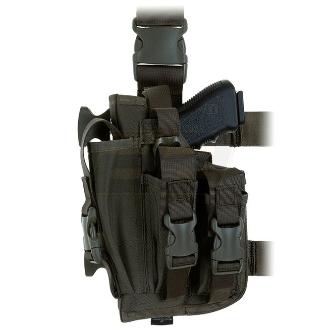 L'étui des SOF est équipé de trois poches de chargeur intégrées (l'une est surdimensionnée et peut également accueillir un silencieux) et d'un panneau de jambe intégré - fixé à la cuisse par un clip de ceinture et des sangles élastiques.