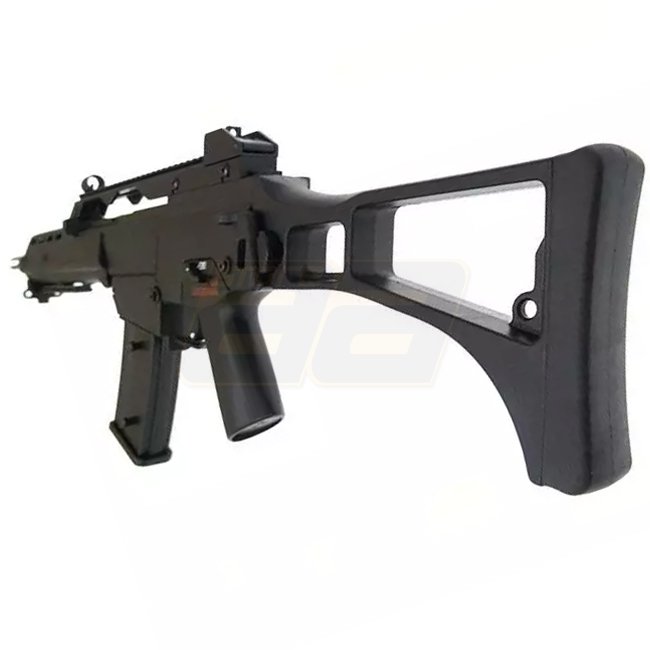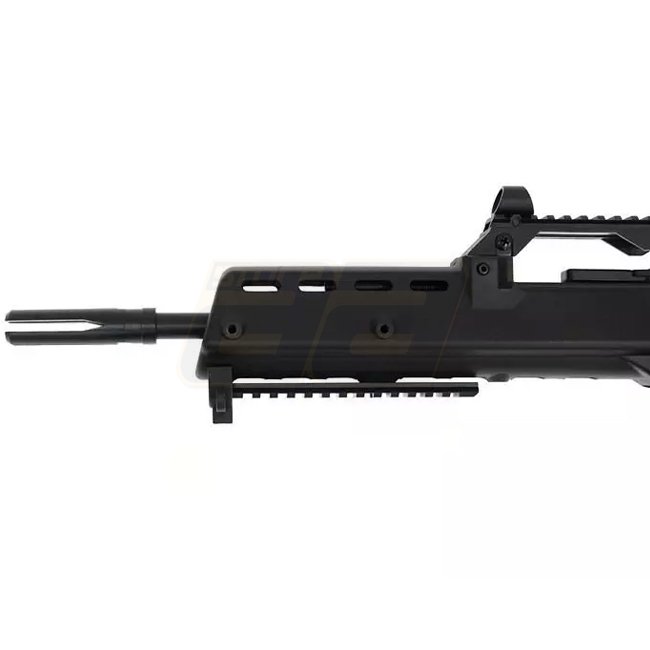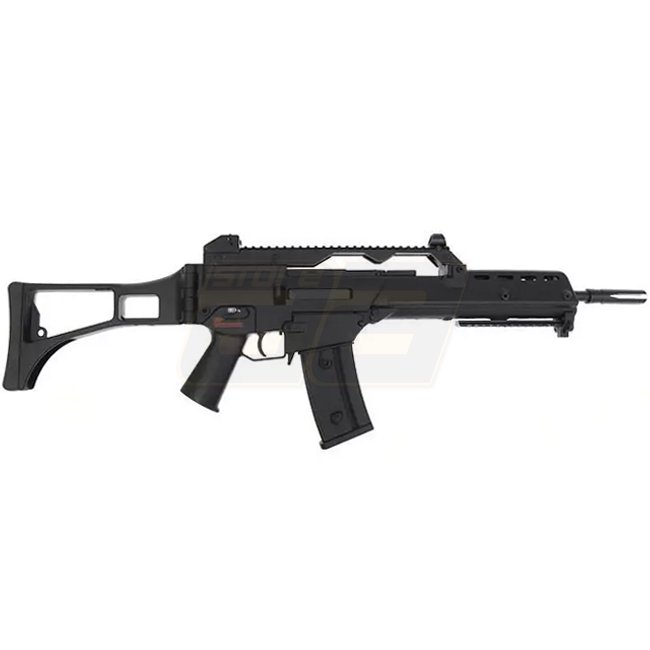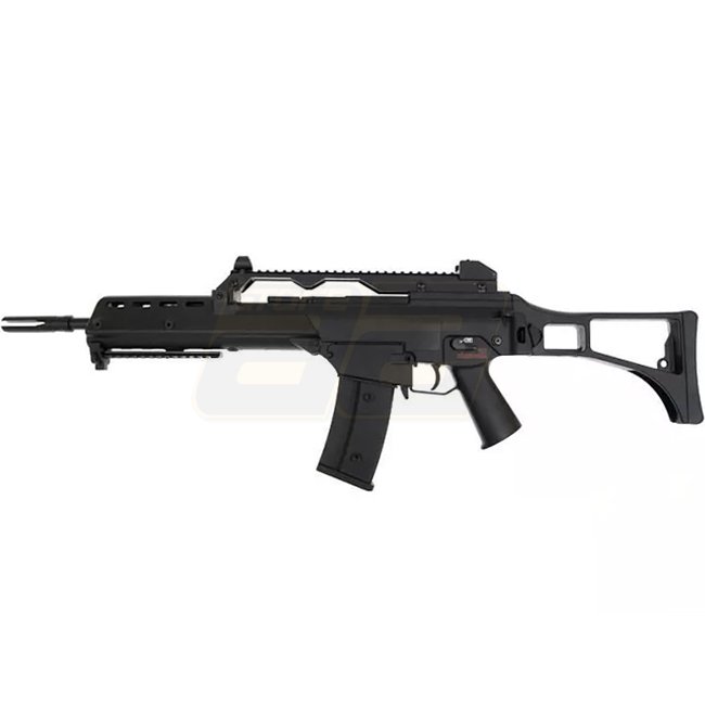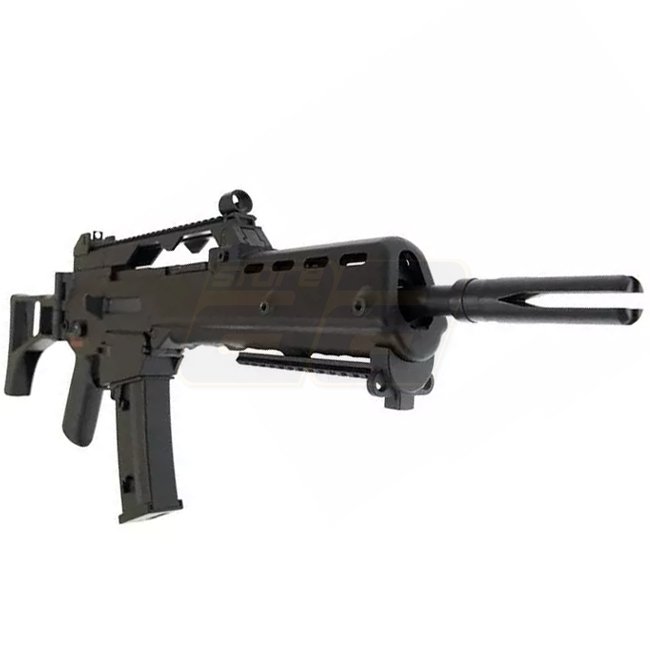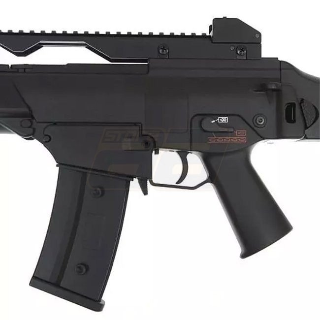 Jing Gong JG36K AEG - Noir. Gearbox version 3, plastique ABS, capacité du chargeur de 470 billes. Longueur de 644/860mm, poids de 2790g. Tirs à 330-350 FPS, semi-automatique et automatique, avec hop-up réglable. Inclus : arme, chargeur, batterie, chargeur