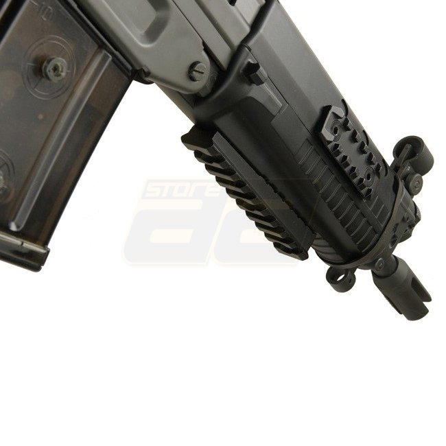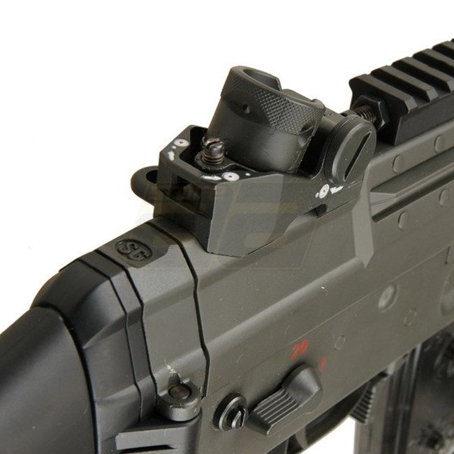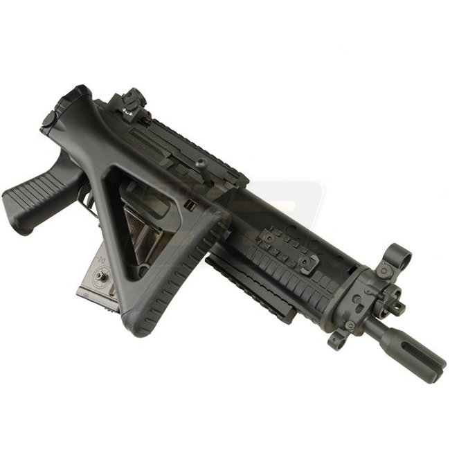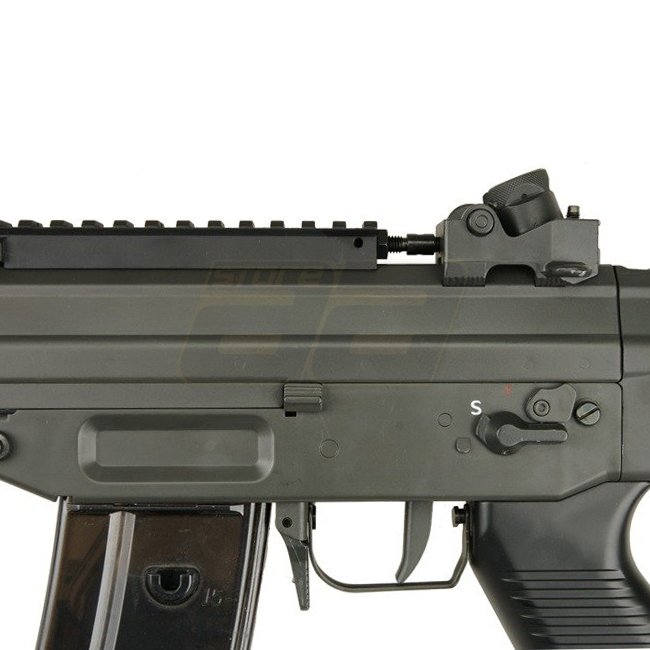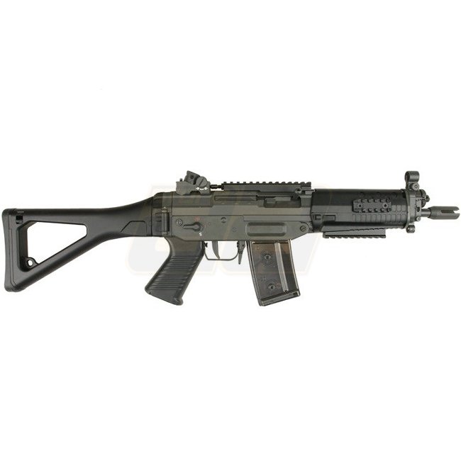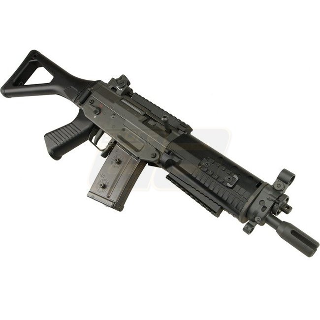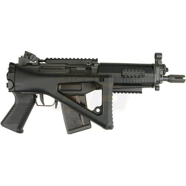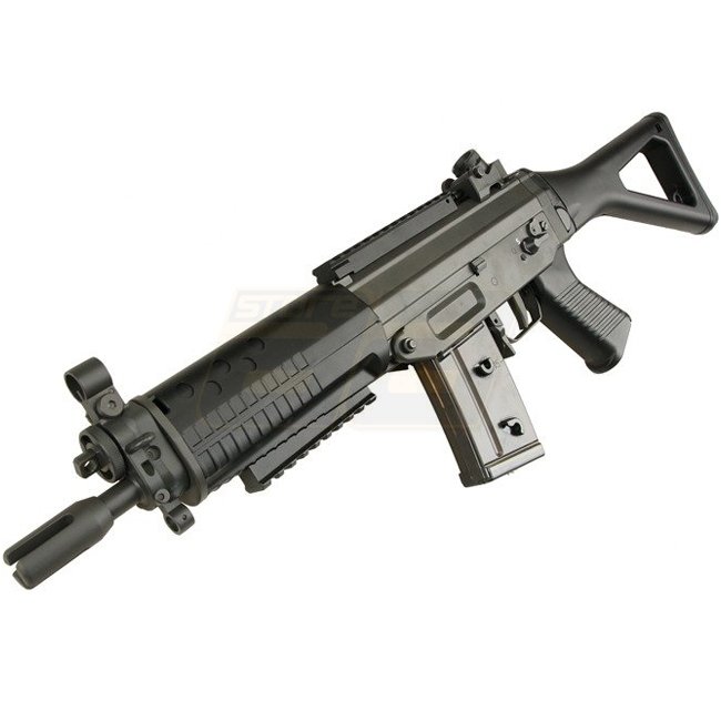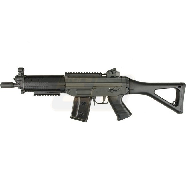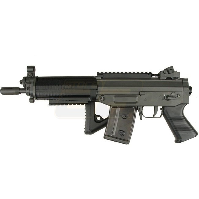 La Jing Gong SG552 AEG est un fusil airsoft polyvalent avec un gearbox Version 3 et une capacité de chargeur de 220 billes. Il dispose d'un moteur de type moyen, d'une construction en plastique/métal et d'un hop-up réglable pour des tirs de précision.