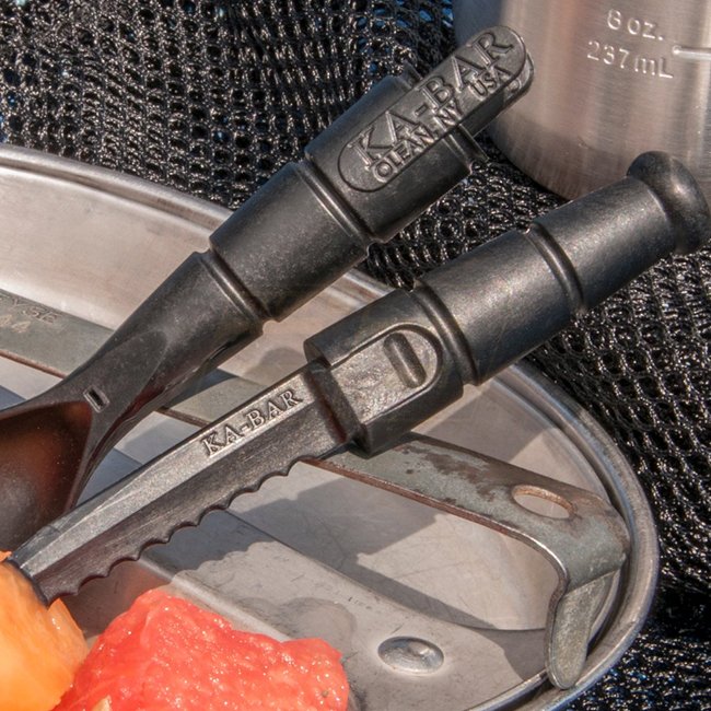 Le Field Kit Spork Set est parfait pour le camping, la randonnée, les pique-niques, le stockage dans des boîtes à gants et des sacs à dos, et pour manger sur le pouce. Fabriquées à partir de Creamid sans danger pour les aliments et l'eau, les Sporks passent au lave-vaisselle. Les Sporks comportent une combinaison cuillère/fourchette à la base et un couteau dentelé à l'intérieur. Le couteau est accessible en tirant sur les deux extrémités de la Spork. La longueur totale de chaque spork est de 6.875" / 175 mm. La longueur de la lame du couteau est de 2.5" / 63.5 mm. Fabriqué aux Etats-Unis. |