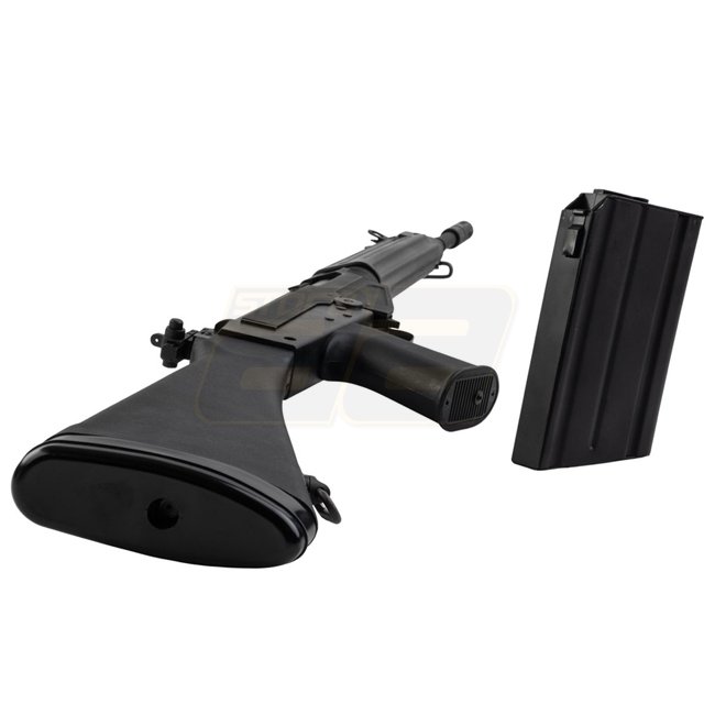 Le King Arms FAL Airsoft AEG (Longueur Complète) V2 est une réplique 1:1 méticuleusement conçue du célèbre fusil de combat FN FAL, avec un boîtier entièrement en métal et des composants en acier pour une durabilité et un réalisme accrus. Équipé d'une boîte de vitesses renforcée Version 3 et d'un système hop-up réglable, il offre des performances fiables pour les passionnés d'Airsoft.