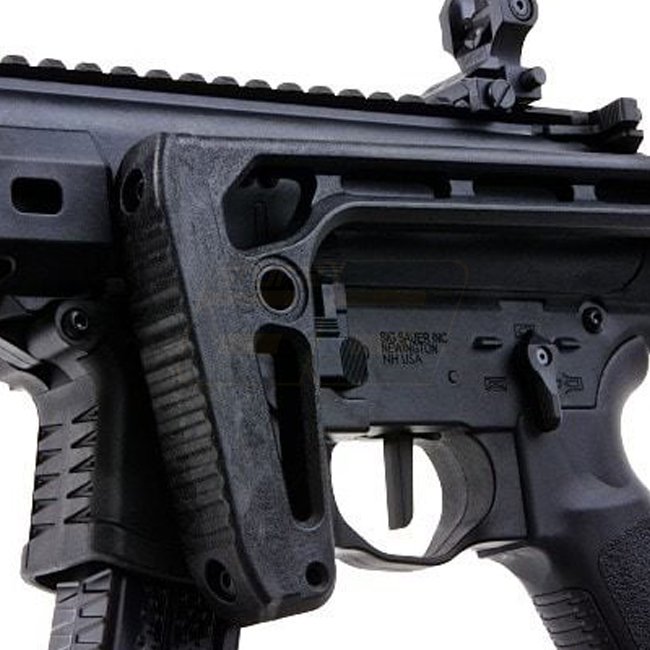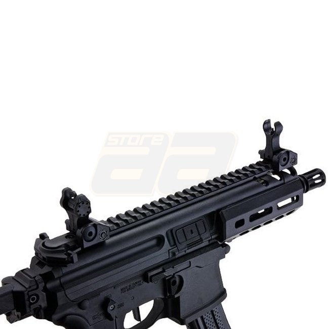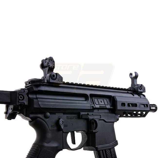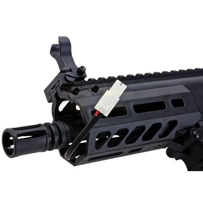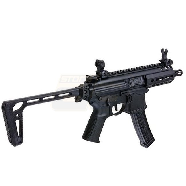 King Arms SIG MPX-K Sportline AEG - Noir : réplique airsoft haute performance et polyvalente offrant 300-320 FPS avec un mode de tir semi-automatique et automatique. L'AEG est doté d'un boîtier en métal durable, d'un hop-up personnalisable et d'un design