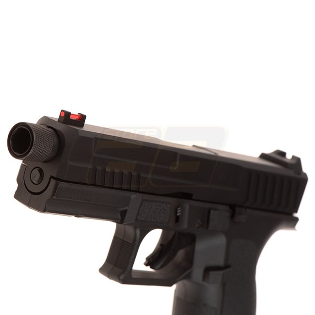 Pistolet à gaz à recul KJ Works KP-13 TBC - Noir : Construction en métal et polymère de haute qualité, capacité du chargeur de 23 billes, longueur de 215 mm, poids de 780 g, longueur de canon intérieur de 95 mm, vitesse à la bouche de 320 à 340 FPS, mode