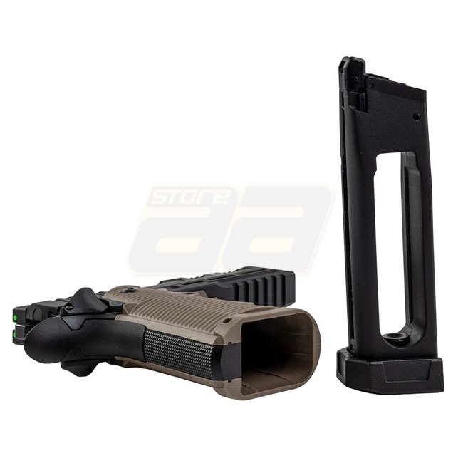 Alimenté par des cartouches de Co2, le KP-19S garantit des performances fiables même par temps froid et un tir puissant et constant. Compatible avec les chargeurs Co2 de la série G de KJ Works.