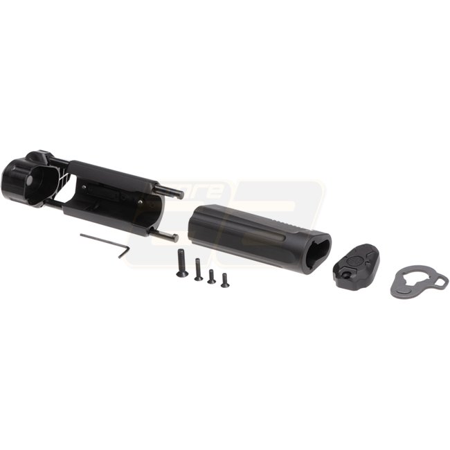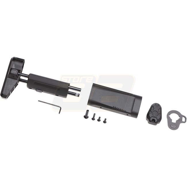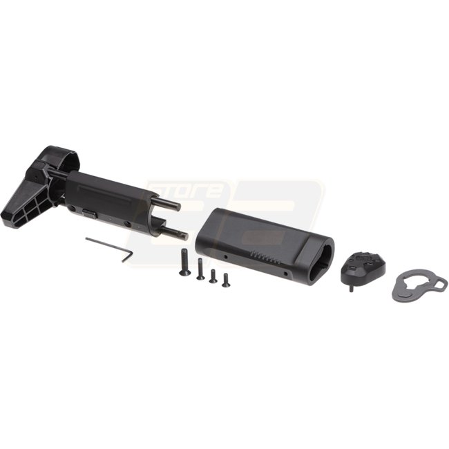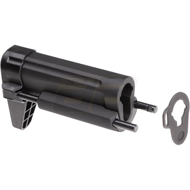 Stock Compact Krytac - Noir : Crosse légère, durable et ergonomique conçue pour un confort et une mobilité maximaux. Parfaite pour améliorer les performances de votre fusil sans ajouter de volume inutile.