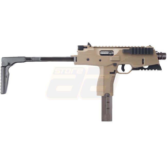 KSC TP9 A3 Gaz Blow Back SMG - Terre Foncée avec des pièces en polymère renforcé de fibres et en métal. Capacité de chargeur de 48 (6mm), longueur de 305 / 527mm, poids de 1725g. Longueur du canon intérieur de 140mm. Filetage du canon n/a, vitesse de sort
