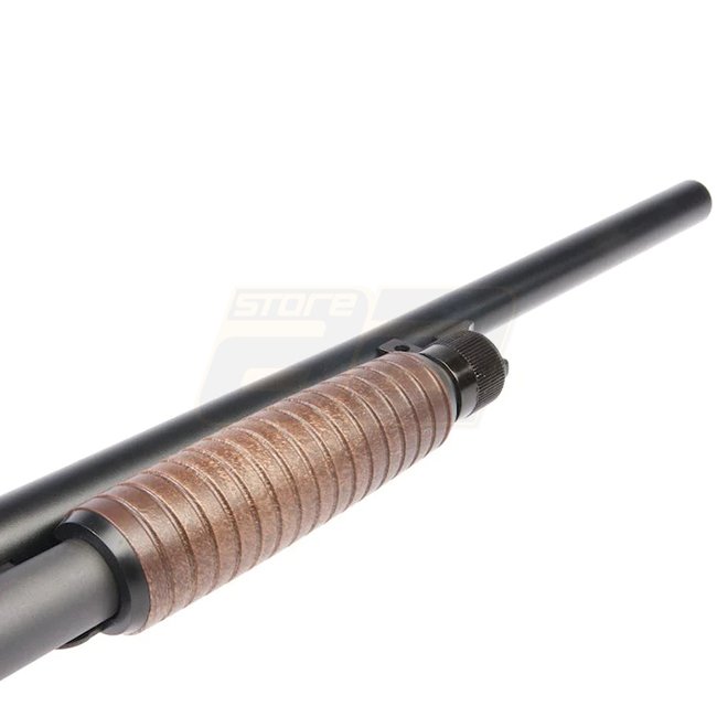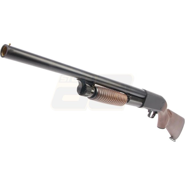 Le fusil à pompe KTW Ithaca M37 de haute qualité offre une précision de tir avec une fonction Hop Up réglable. Le paquet comprend le fusil et 1 chargeur.