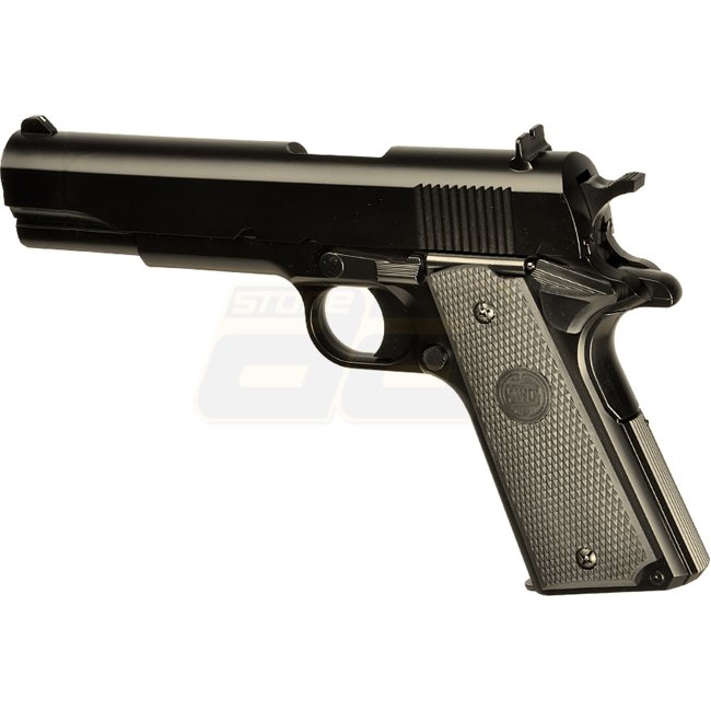 KWC M1911 Spring Pistol - Noir est un pistolet airsoft durable et réaliste, parfait pour les skirmishes ou le tir de précision. Ce pistolet est fabriqué en plastique ABS et en métal, dispose d'un chargeur de 10 billes et d'un système hop-up fixe. Il mesur