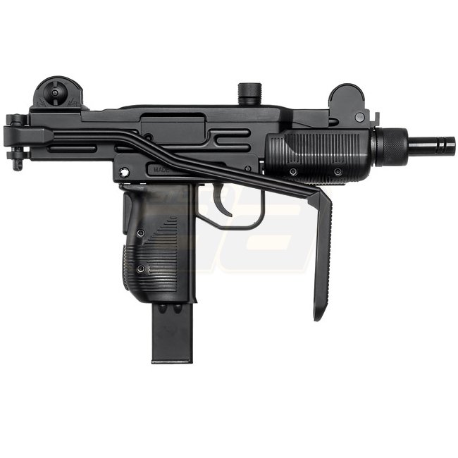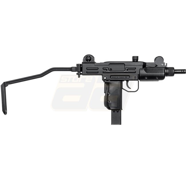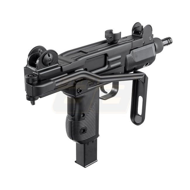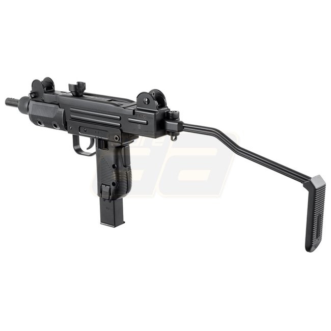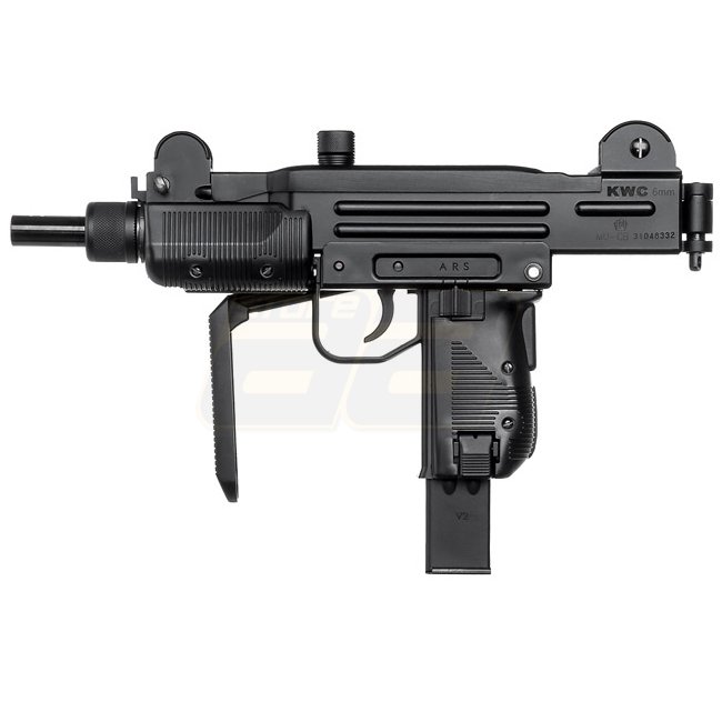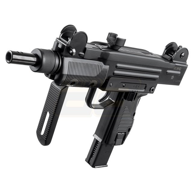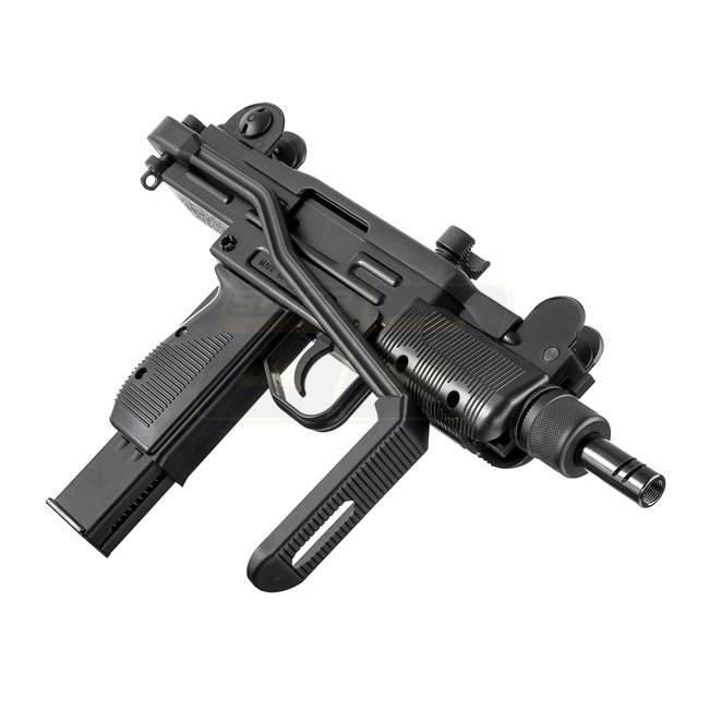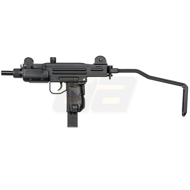 KWC Mini UZI Blow Back Co2 SMG : Construction en métal et en plastique, magazine de 38 coups, longueur de 360/600 mm, poids de 2150 g, canon intérieur de 120 mm, vitesse de bouche de 420-440 FPS, modes de tir semi-automatique et automatique, hop-up réglab