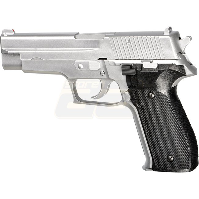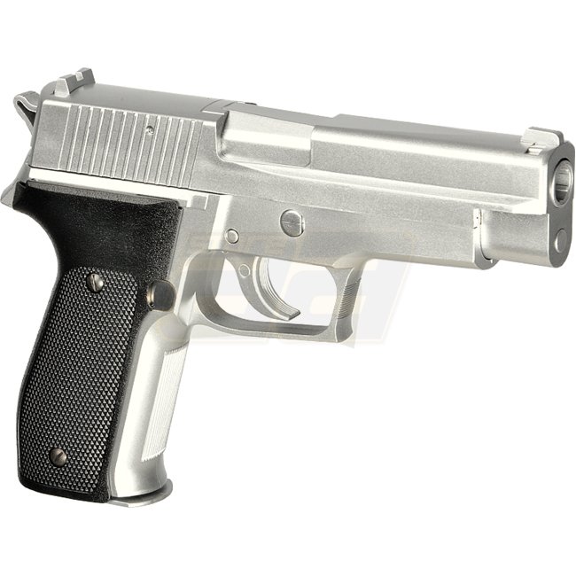 Pistolet à ressort KWC P226 - Argent : Pistolet airsoft de qualité fabriqué en plastique ABS durable et en métal avec une capacité de chargeur de 12 coups. Parfait pour les débutants et les entraînements !