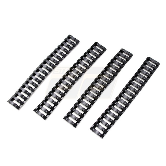 Ce jeu de panneaux de rail en échelle noir est un accessoire polyvalent s'adaptant à tous les rails de 20 mm/Picatinny, offrant confort et grip pour des performances améliorées. Facile à installer et durable.