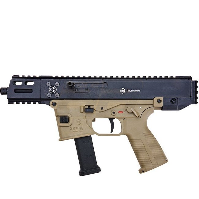 Lambda Defence GHM-9 Gas Blow Back SMG - Deux Tons est un SMG en métal et polymère avec une capacité de chargeur de 31 cartouches. Il a une longueur de 360 mm, pèse 1590 g et propose des modes de tir semi-automatique et automat