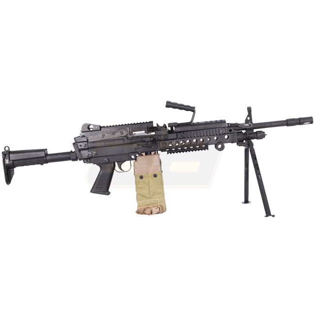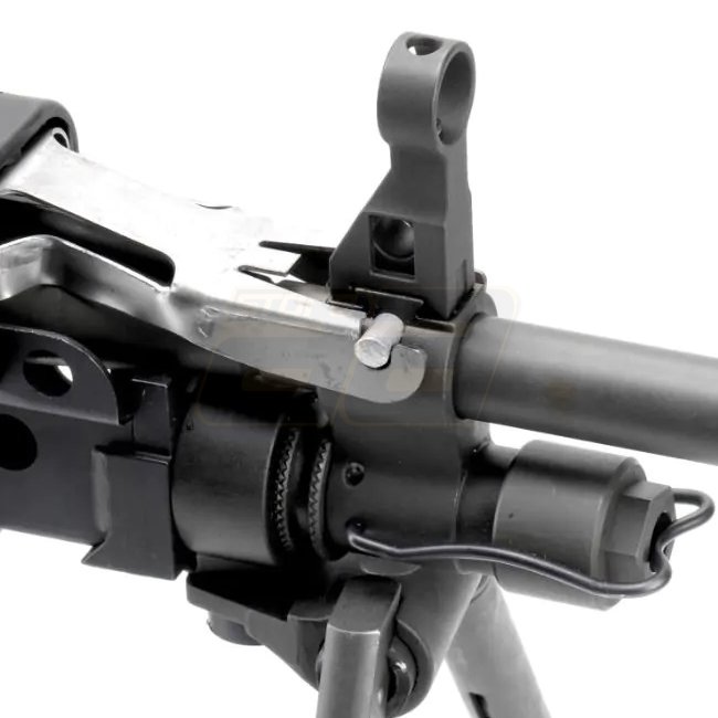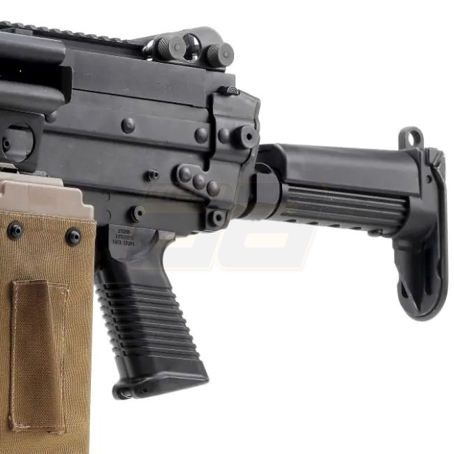 Fusil AEG Lambda Defence MK48 Mod.1 PARA de haute qualité avec gearbox en métal et poignée/crosse en polymère. Capacité de chargeur de 5000 billes, hop-up ajustable, portée de tir de 46,65 à 49,39 m, et vitesse à la bouche de 340 à 360 FPS. Idéal pour les