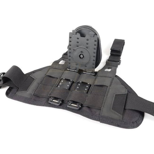 Un holster rapide de style bataille Laylax polyvalent conçu pour le Marui P90/Krytac P90 dans une élégante couleur noire. Solution pratique et stylée pour transporter votre pistolet pendant le jeu.