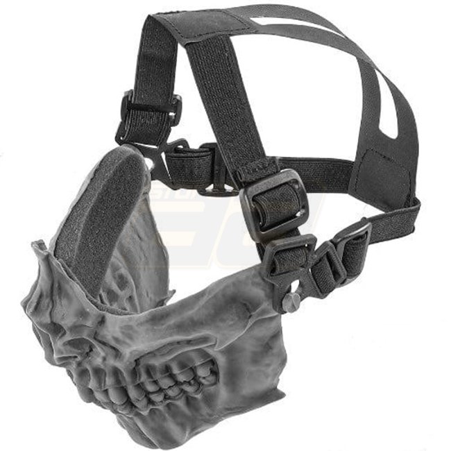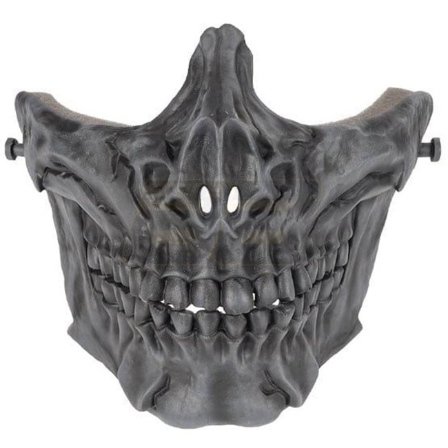 Masque de visage Laylax Battle Style Skull Face Guard en noir - un masque de visage stylé et protecteur pour vos batailles d'airsoft. Avec un design de crâne élégant et un confort optimal. Restez en sécurité et ayez l'air cool sur le terrain !