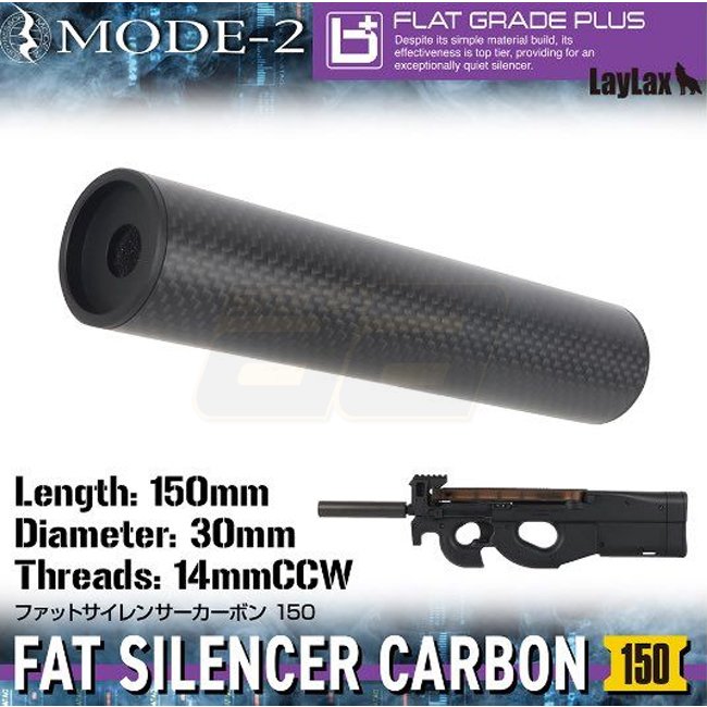 Laylax MODE-2 Carbon Fiber FAT Silencer 14mm CCW 150mm - Black