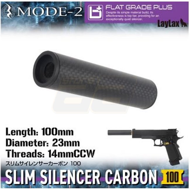 Laylax MODE-2 Carbon Fiber Slim Silencer 14mm CCW 100mm - Black