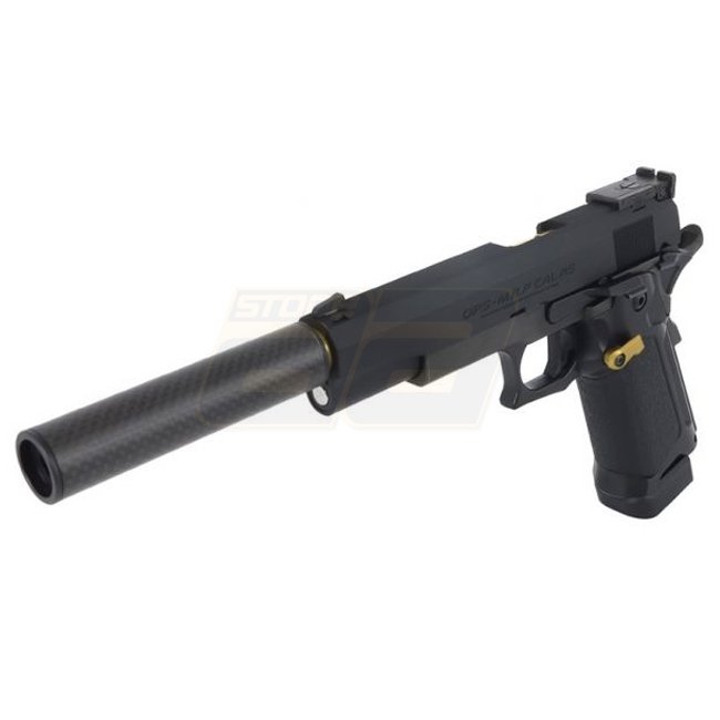 Le silencieux Laylax MODE-2 en fibre de carbone slim 14mm CCW 100mm - Noir est un accessoire d'armement de haute qualité conçu pour réduire le bruit et améliorer l'apparence générale de votre arme. Fabriqué en matériau en fibre de carbone durable, ce sile