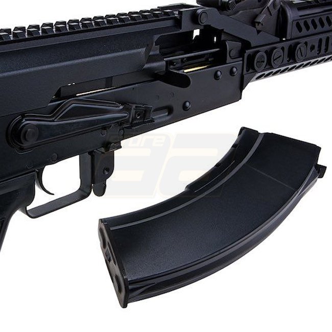 LCT AK104 Z Sport AEG - boîte de vitesses en métal, moteur personnalisé, capacité du chargeur de 130 billes, longueur de 680 mm, poids de 3500 g, vitesse de 380-400 FPS, mode semi-automatique et automatique, hop-up réglable. Comprend l'arme et le chargeur