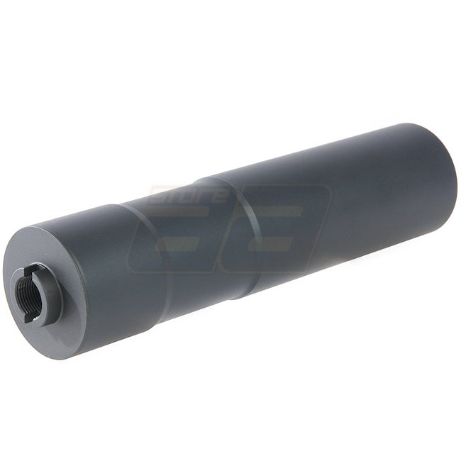 Silencieux factice en métal de haute qualité pour modèles AK par LCT. Construction en métal, longueur de 186 mm, diamètre de 45 mm, poids de 370 g. Fil: 14mm- / CCW.