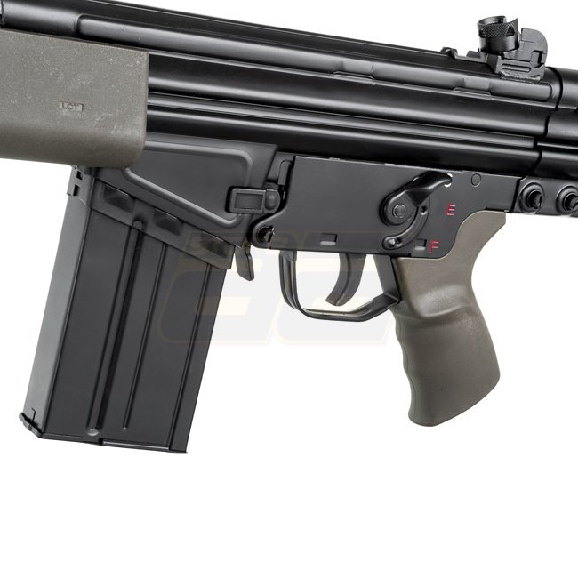 LCT LC3A3-W AEG - Olive - Fusil airsoft de haute qualité avec une construction en acier durable et des éléments en polymère confortables. Avec une capacité de chargeur de 140 billes et un système hop-up réglable pour une meilleure précision. Parfait pour